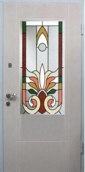 Входные двери в Инте с применением декора витражом изготавливаются из стального профиля, придающего прочность конструкции, а сама витражная вставка обладает высокой взломостойкостью, поскольку для витражных композиций используется специальное стекло, обработанное особым образом. Усилить надежность витражного элемента можно с помощью использования декоративных кованных решеток.