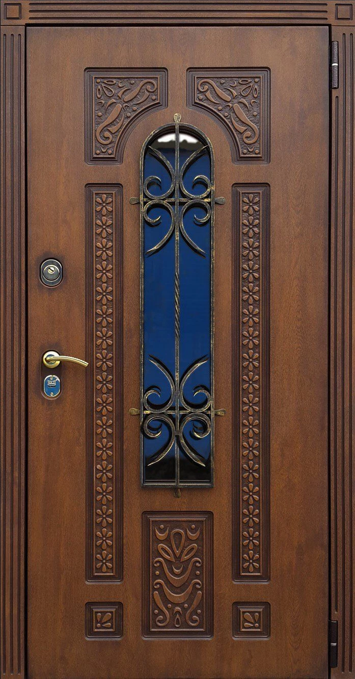 Входные двери в Инте с применением декора витражом изготавливаются из стального профиля, придающего прочность конструкции, а сама витражная вставка обладает высокой взломостойкостью, поскольку для витражных композиций используется специальное стекло, обработанное особым образом. Усилить надежность витражного элемента можно с помощью использования декоративных кованных решеток.