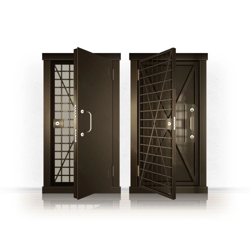 Металлические двери КХО и КХН представляют собой входные блоки, обладающие высоким уровнем взломостойкости и состоят из трех основных элементов: усиленного каркаса, сплошного металлического полотна и решетчатой двери. Дверной блок изготавливается из стального уголка 100*100 мм. Места крепления блока к стене цементируются и закрываются стальными наличниками шириной 40 мм. Крепеж заходит вглубь стены на 80 мм. В конструкции внешней створки монтируются ребра жесткости, для обшивки используется сталь толщиной не менее 3 мм. Внутренняя решетка изготавливается из прутка диаметром 16 мм. Размер ячеек решетки должен составлять не более 15 на 15 см. В точках пересечения прутья надежно приваривают друг к другу. В КХО и КХН необходимо поддерживать определенную температуру и влажность. Для этого внутреннее пространство глухой двери заполняется теплоизоляционным материалом, а по периметру двери приклеивается уплотнитель. Такие двери оборудуются замками с повышенным уровнем взломостойкости. Специализированные двери КХО и КХН в Инте могут быть оснащены сигнализацией, в конструкции могут быть проушины для навесного замка и элементами для опечатывания. Если идет речь о двери в комнату хранения оружия, в створке оборудуется окно для выдачи оружия и спец. средств, которое накрывается стальной дверцей.