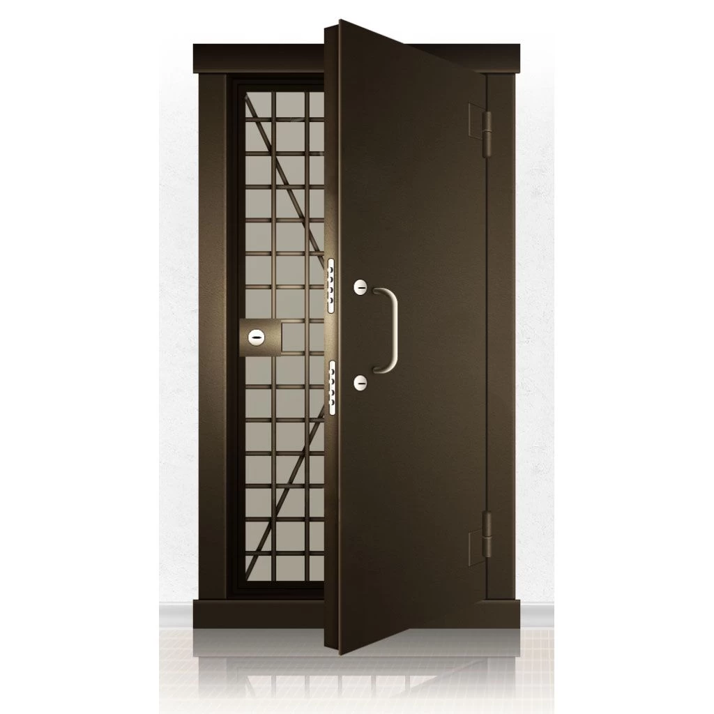 Металлические двери КХО и КХН представляют собой входные блоки, обладающие высоким уровнем взломостойкости и состоят из трех основных элементов: усиленного каркаса, сплошного металлического полотна и решетчатой двери. Дверной блок изготавливается из стального уголка 100*100 мм. Места крепления блока к стене цементируются и закрываются стальными наличниками шириной 40 мм. Крепеж заходит вглубь стены на 80 мм. В конструкции внешней створки монтируются ребра жесткости, для обшивки используется сталь толщиной не менее 3 мм. Внутренняя решетка изготавливается из прутка диаметром 16 мм. Размер ячеек решетки должен составлять не более 15 на 15 см. В точках пересечения прутья надежно приваривают друг к другу. В КХО и КХН необходимо поддерживать определенную температуру и влажность. Для этого внутреннее пространство глухой двери заполняется теплоизоляционным материалом, а по периметру двери приклеивается уплотнитель. Такие двери оборудуются замками с повышенным уровнем взломостойкости. Специализированные двери КХО и КХН в Инте могут быть оснащены сигнализацией, в конструкции могут быть проушины для навесного замка и элементами для опечатывания. Если идет речь о двери в комнату хранения оружия, в створке оборудуется окно для выдачи оружия и спец. средств, которое накрывается стальной дверцей.