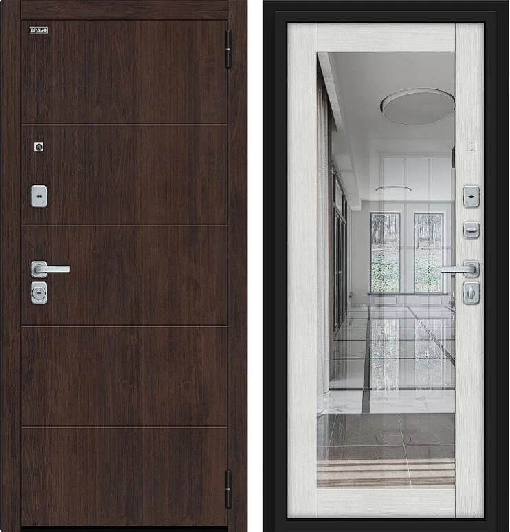 Надежная входная Дверь Браво Флэт/BChrome Almon/Bianco Melinga премиум класса по цене 42 830 руб. Большая толщина стали защитит от проникновения в ваш дом, квартиру или коттедж. Используется очень качественная фурнитура: замки, цилиндры, ручки, защелки. Покрытие и отделка двери изготовлено под внимательным контролем производителя. Дверь имеет долгий срок службы и гарантию.