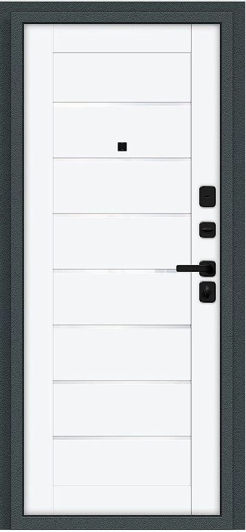Надежная входная Дверь Браво Техно/SBlack Старк антрацит/White Silk премиум класса по цене 36 280 руб. Большая толщина стали защитит от проникновения в ваш дом, квартиру или коттедж. Используется очень качественная фурнитура: замки, цилиндры, ручки, защелки. Покрытие и отделка двери изготовлено под внимательным контролем производителя. Дверь имеет долгий срок службы и гарантию.